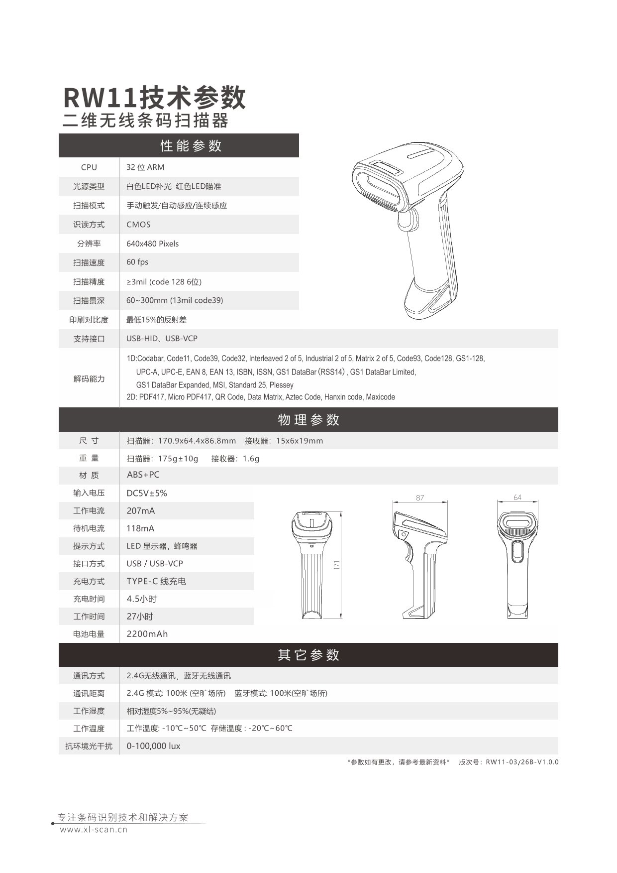 二维无线条码扫描器