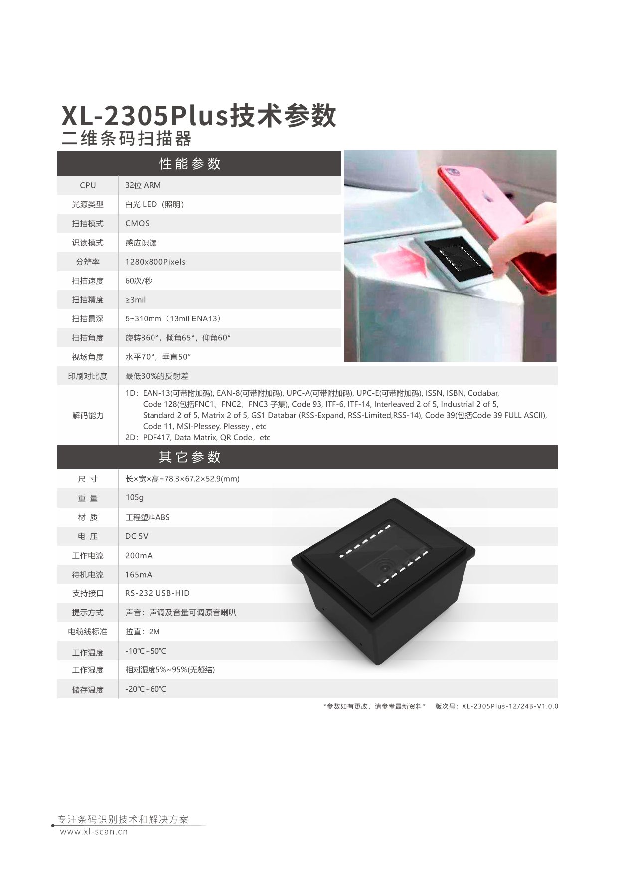 ▪ 识读快: 散射式补光,快速识读最高/低亮度屏幕条码